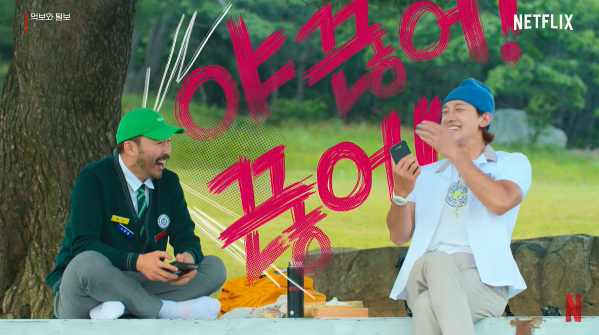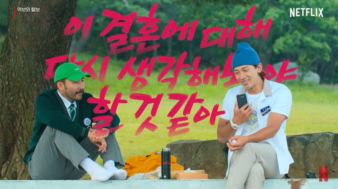넷플릭스 코리아는 16일 '먹보와 털보' 영상클립 '경주 편'을 공개했다. 영상 속에서 노홍철과 비는 쌈밥 도시락, 계란샌드위치 등을 먹으며 야외 피크닉을 즐긴다.
