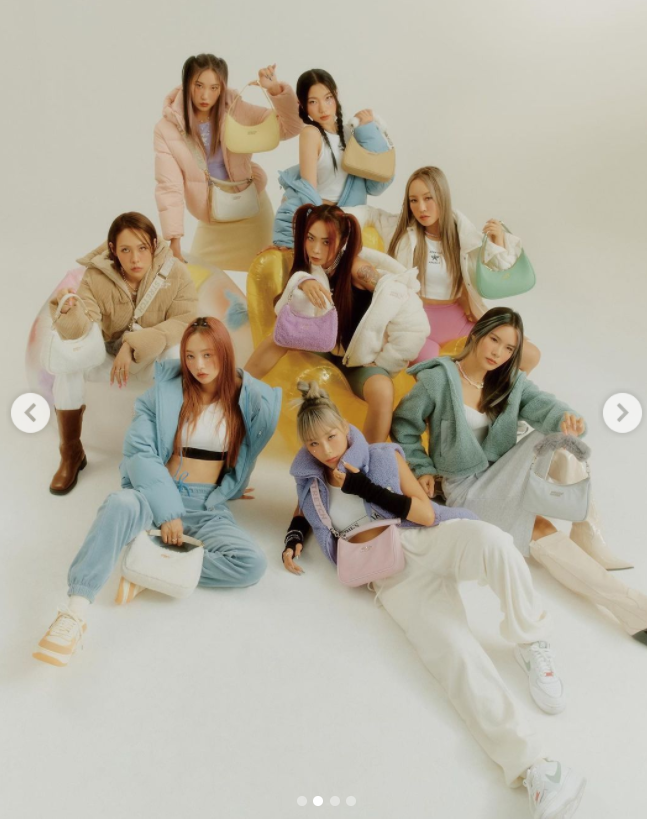 사진 속에서 멤버들은 파스텔톤의 한정판 스트레치엔젤스 백을 들고 왁자한 웃음소리가 들릴 듯한 환한 표정으로 포즈를 취했다.