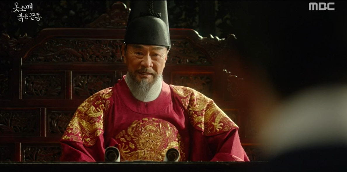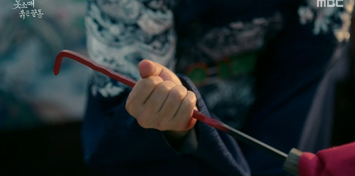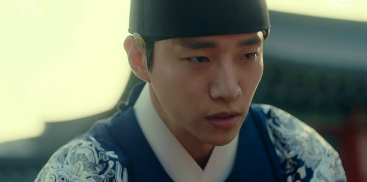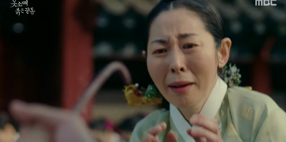 그 순간 이산은 "어미가 아니다. 제가 벌을 받겠다"라며 맨손으로 작대기를 붙들었다. 세손의 희생으로 사태가 수습된 가운데, 중전 김씨(장희진 분)는 이 위험한 짓을 벌인 이가 화완옹주(서효림 분)라는 것을 눈치챈다.