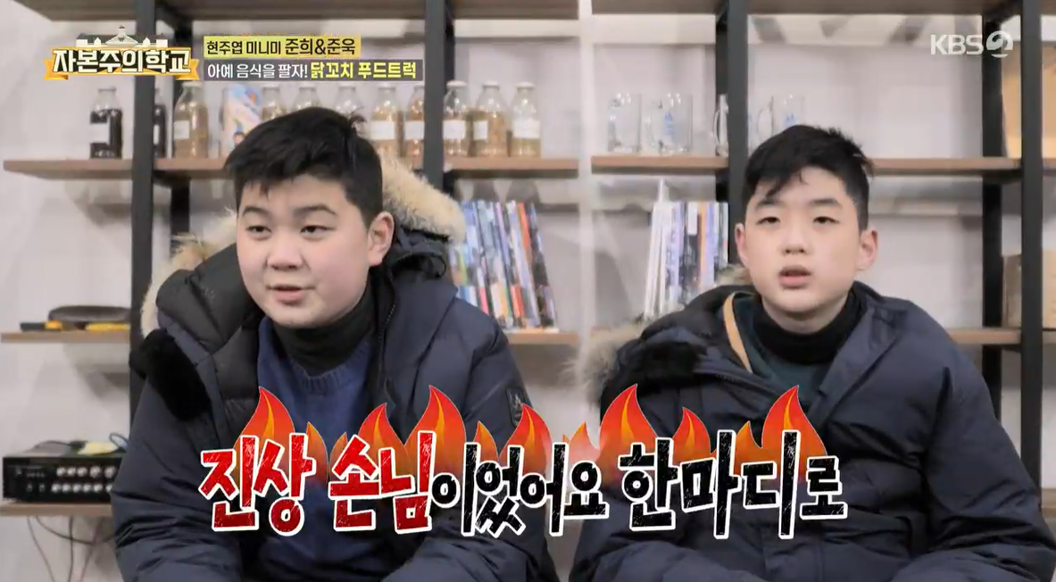 1일 방송된 KBS2 신개념 경제예능 '자본주의학교'에서 '자본주의의 짠맛'을 배워가는 경제 삐약이들의 좌충우돌이 그러졌다. 이날 준희, 준욱 남매는 고기에 남다른 재능을 발휘, 직접 닭꼬치를 판매하기로 했다.