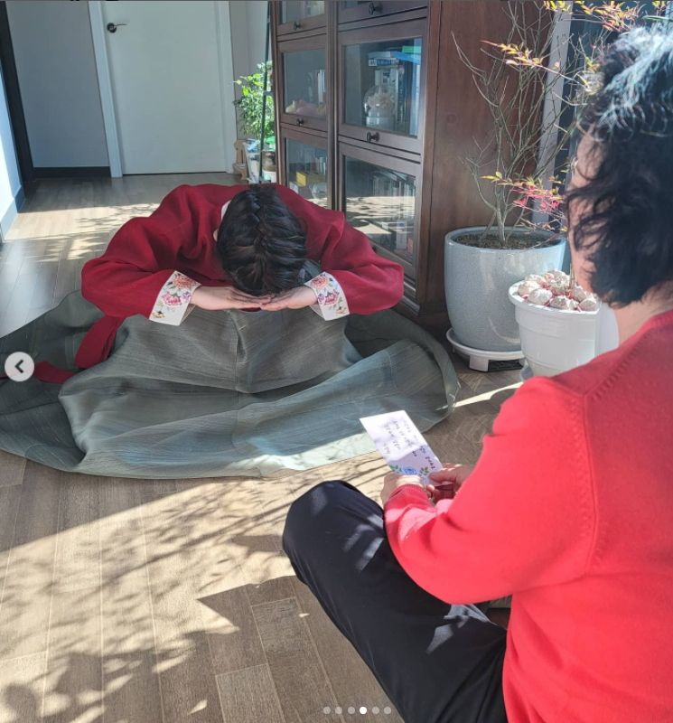 용돈 봉투에는 "사랑하는 며느리 고맙고 감사하고, 올해는 우리 이쁜 아기 하고 건강하게 잘 살자. 사랑해"라는 글이 적혀 있다. 아내 곁에서 어금니가 보이도록 환히 웃는 장동민의 모습에 행복이 물씬 풍긴다.