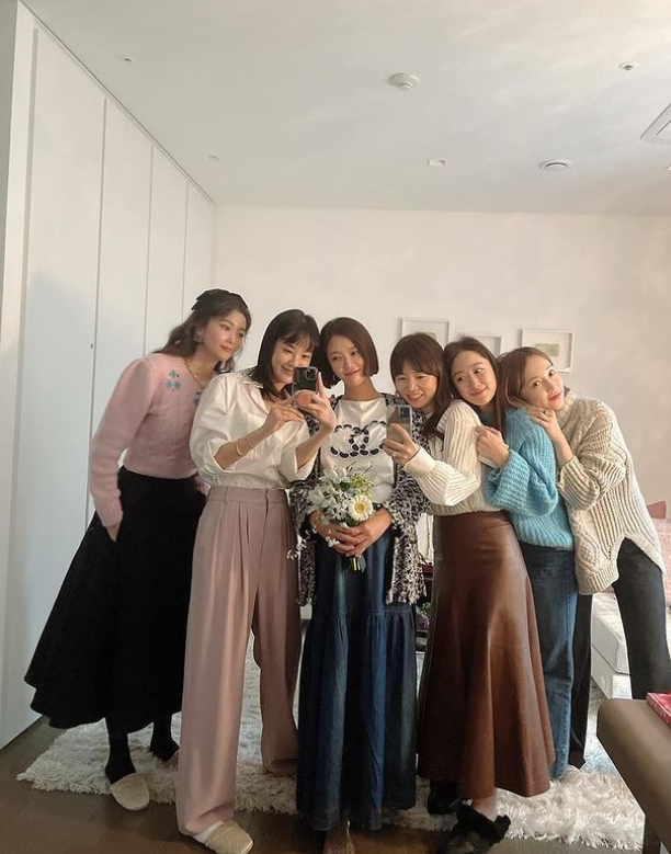황정음은 8일 자신의 SNS에 지인들의 축하와 격려 속에 순산을 준비하는 모습을 알렸다. 축하 꽃다발을 든 황정음을 중심으로 배우 오윤아, 전혜빈, 슈가 출신 아유미, 애프터스쿨 주연 등 지인들이 화기애애한 모습이다.