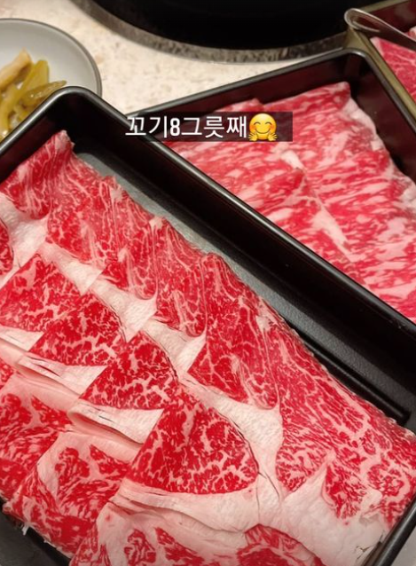 황정음은 SNS 스토리로 "꼬기 8그릇째"라며 유혹적인 꽃등심을 인증해 웃음을 안겼다.