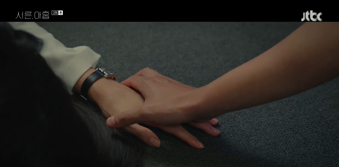 눈물 범벅인 미조는 진석을 붙들고는 "김진석, 이 나쁜 새끼야. 내가 너 죽일거야. 너 때문이야" 라며 오열했다. 바닥에 쓰러져 몸도 가누지 못한 채 우는 미조에게 다가간 선우는 가만히 미조의 손을 잡으며 위로했다.