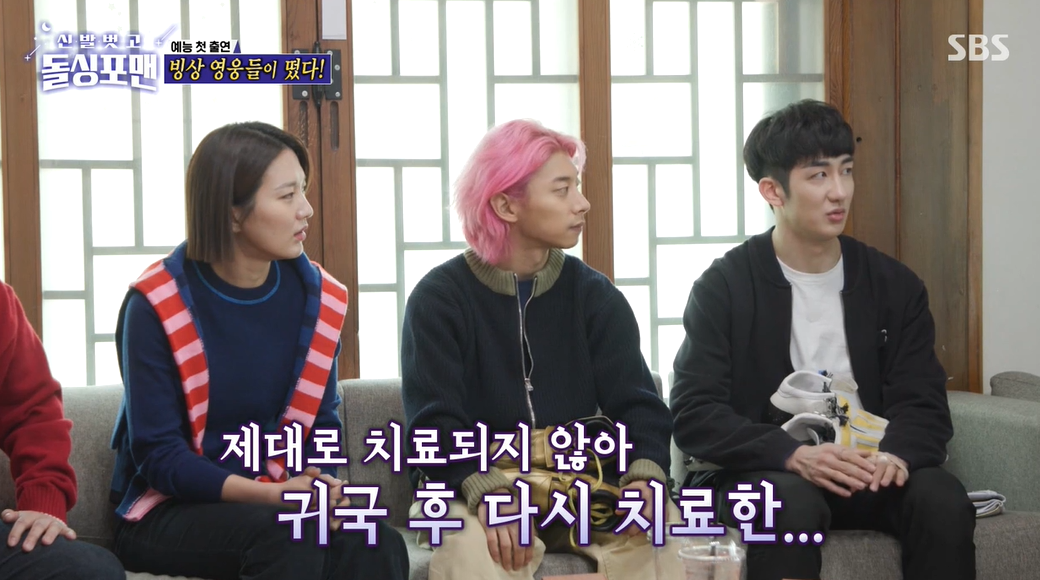 여전히 붕대를 감고 출연한 그는 "중국에서 4군데 12바늘을 꿰맸는데 한국 와서 잘 안 아물어서 한 부위만 다시 꿰맸는데 촘촘히 10바늘 정도를 꿰맸다”라고 말했다.