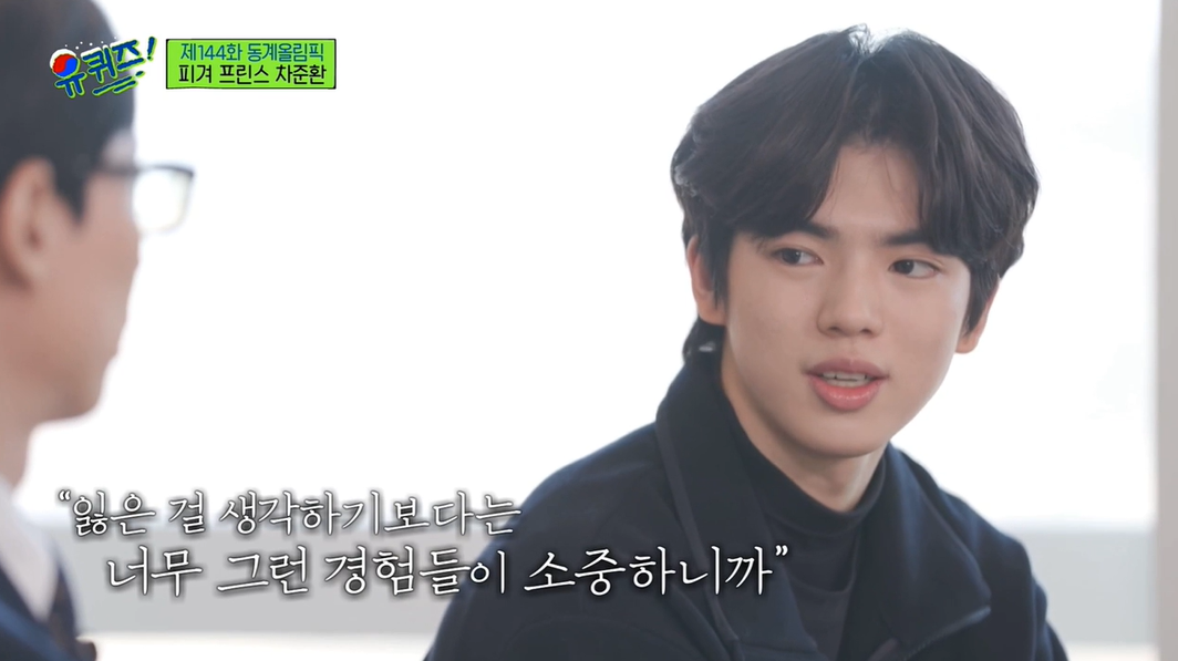 유재석이 "이 자리에 있기까지 포기한게 뭐냐"고 묻자 차준환은 "평범한 일상"이라면서 "하지만 다른 걸 얻었으니까, 그 소중한 경험들을 온전히 느끼고 싶다"라고 말했다.