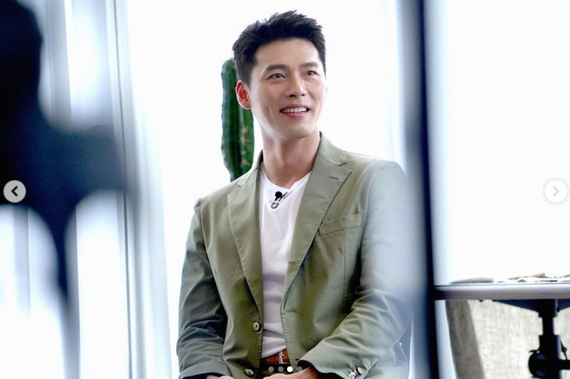 사진 속에서 현빈은 카키색 재킷에 흰 셔츠를 입어 편안해 보이는 모습으로, 무슨 재미난 이야기를 들었는지 보조개가 패이도록 환한 미소를 짓고 있다.