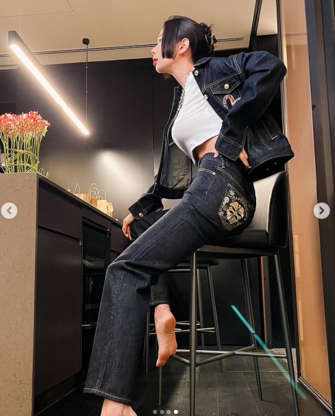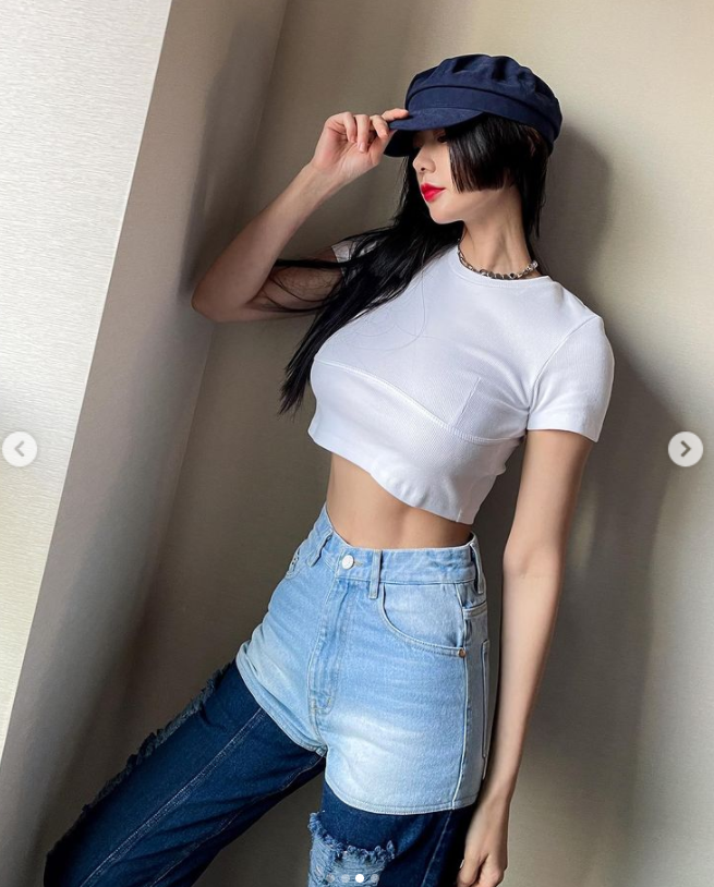 클라라는 7일 자신의 SNS에 복근이 선명히 드러나는 짧은 화이트 탑에 다양한 스타일의 데님을 소화했다. 진청과 화이트진, 워싱진에 데님 모자 등 조합은 여러가지였지만, 어떤 옷도 완벽히 소화해냈다.