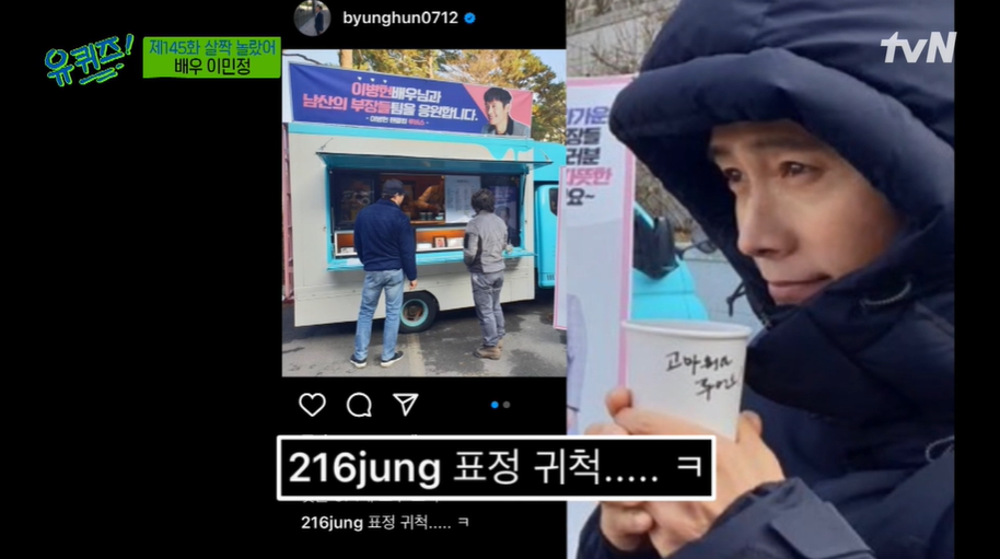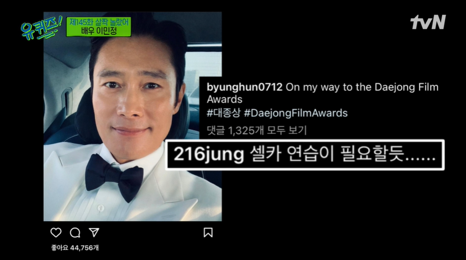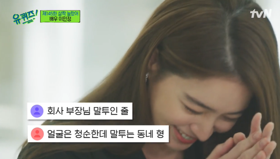 16일 방송된 tvN '유퀴즈 온 더 블럭'에 출연한 이민정은 댓글스타로 일상을 공개했다. 청순한 얼굴과 달리 동네형이나 부장님 말투로 재치있는 댓글을 다는 이민정의 개인 SNS는 '댓글 맛집'으로 통한다.