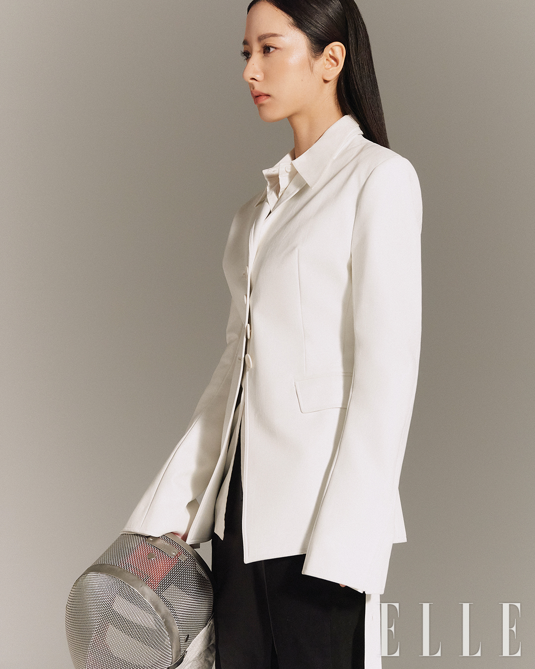 보나는 최근 공개된 엘르코리아 4월호 화보에서 펜싱 헬멧과 칼, 장갑 등을 들고 긴장감이 팽팽히 흐르는 포즈를 연출했다.