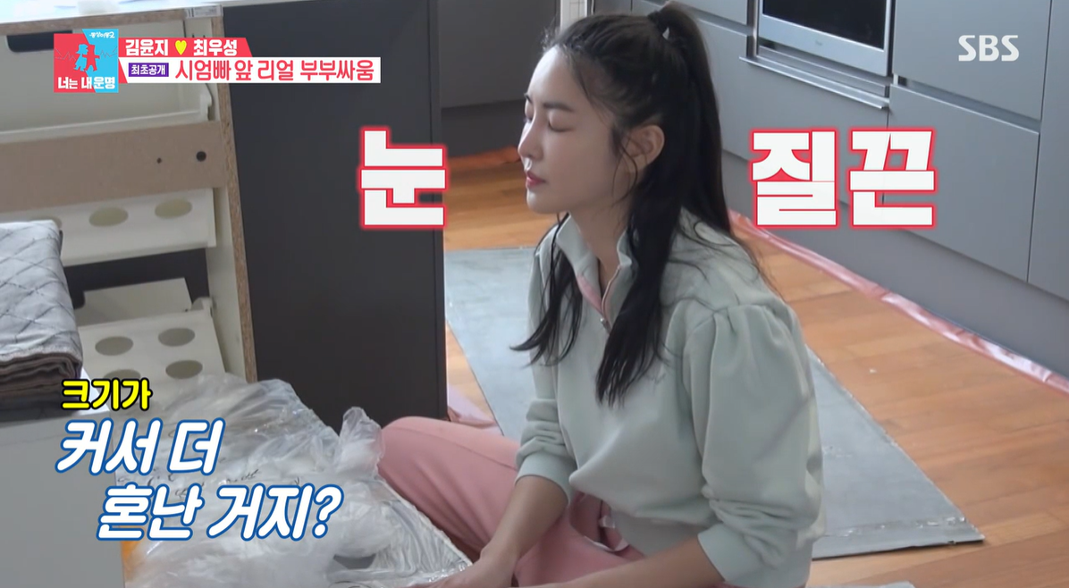 21일 방송된 SBS '동상이몽2-너는 내 운명'에서 김윤지가 신혼집 입주와 동시에 배달된 각종 거대한 운동기구에 폭발했다.