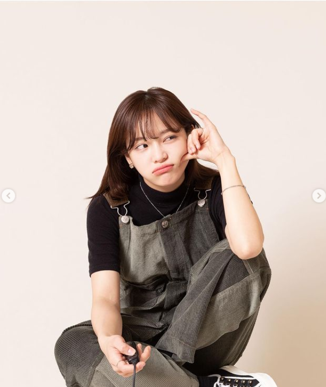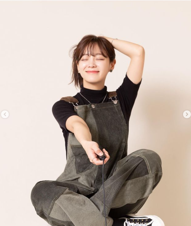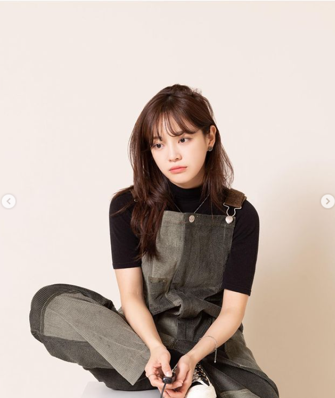사진 속에서 김세정은 카키색 패치워크가 들어간 오버롤, 일명 멜빵바지에 검정 셔츠, 캔버스화로 미대생같은 발랄한 모습이다.