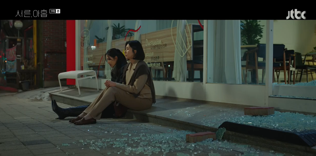 뒤늦게 미조와 주희가 도착한 가운데 좌절한 찬영을 보다 못한 미조가 총대를 맸다. 셋은 나란히 보도 블럭을 집어 들었고, 와장창 깨진 유리창 너머로 케이크를 구조했다.