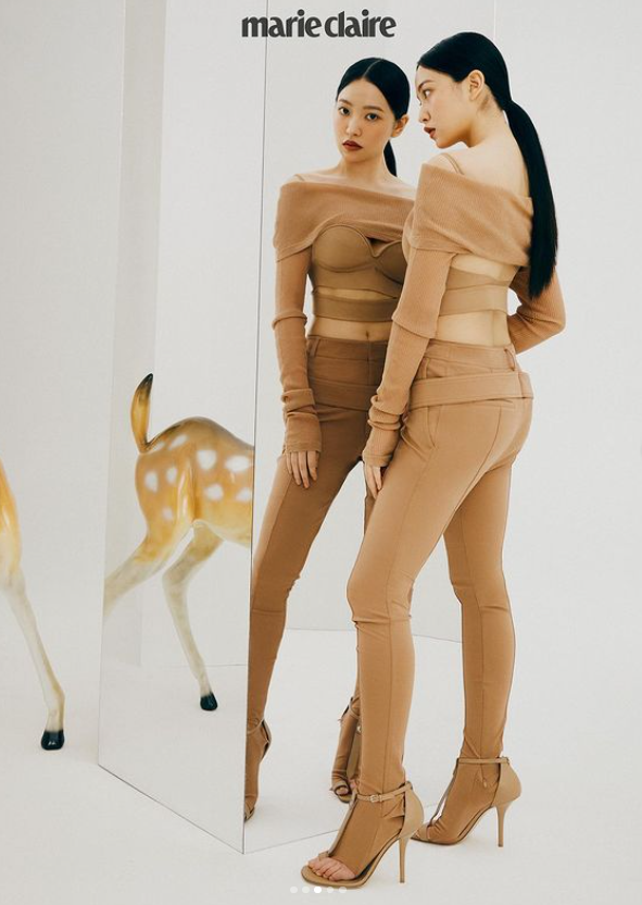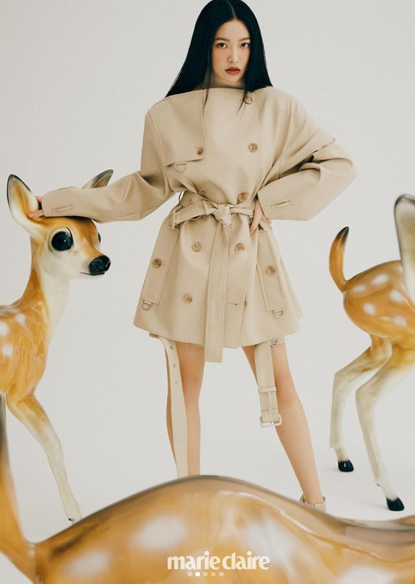 꽃사슴이 소재로 사용된 화보에서 예리는 연갈색 톤 코트를 비롯해 독특한 절개의 의상 등을 신비로운 분위기로 소화해냈다.