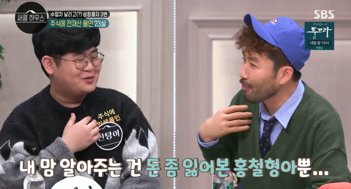 24일 방송된 SBS '써클 하우스'에 상장폐지를 3번 당했다는 '인간지표' 한탕이가 출연했다. 특이하게도 자신이 고민사연을 보낸 게 아니라 주변에서 "왜 저러고도 주식을 하는 건지, 저러다가 한강 가는 거 아닌지 걱정이다"라는 의뢰로 출연한 케이스였다.