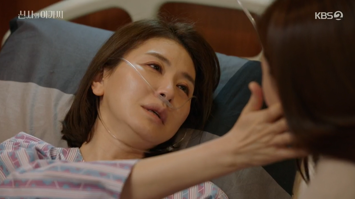 27일 방송된 KBS2 주말극 '신사와 아가씨'에서 췌장에 암이 전이되며 급격히 병세가 악화된 애나킴(이일화 분)이 마지막 유언을 남겼다. 애나킴은 놀라 달려온 차연실(오현경 분)에게 "감사하다"고 인사했고, 연실은 "단단이 결혼할 때도 애낳을 때도 늘 옆에 있을 거다. 걱정말라"고 말했다.