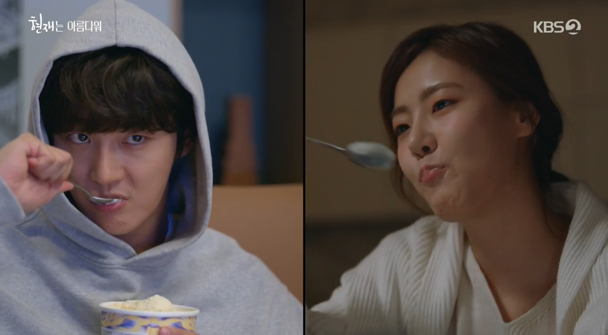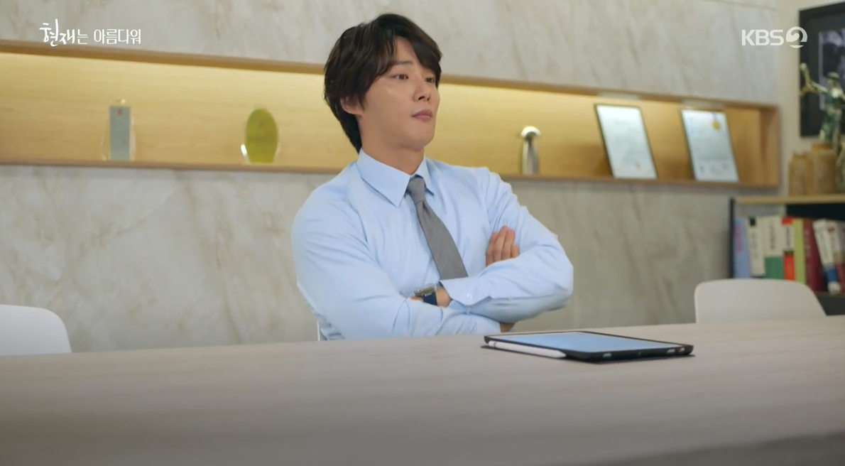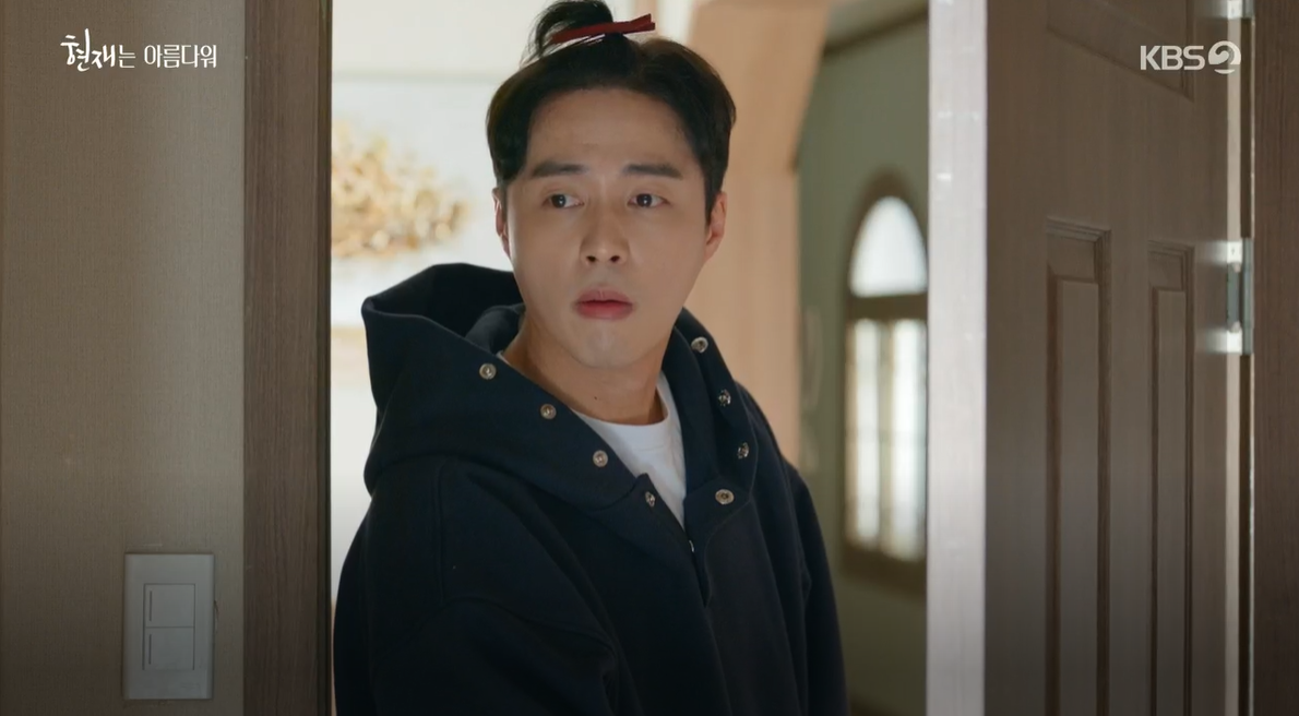 3일 방송된 KBS2 주말극 '현재는 아름다워'에서 현미래(배다빈 분)는 사기결혼으로 이혼소송 중인 남편 박준형(이현진 분)을 만났다. 미래는 "미국에서 대학나온 것 맞냐. 졸업장은 있냐"라고 물었고, 준형은 "거리낄 것없어. 보여줄게. 그런데 저녁은 먹고가라"고 말했다.