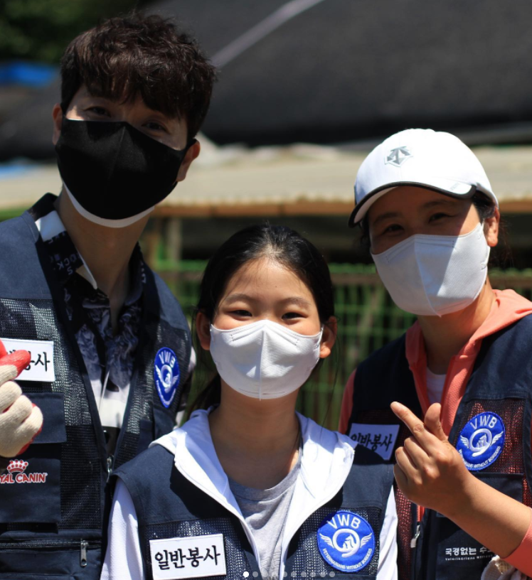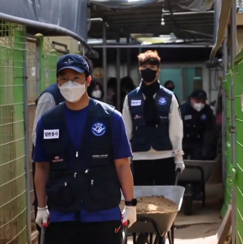 다홍이 처럼 버려진 동물들을 위해 구슬땀을 흘리는 모습이 포착됐다. 국경없는 수의사회는 최근 공식 계정을 통해 봉사활동에 참여한 이들의 영상을 공개했다.