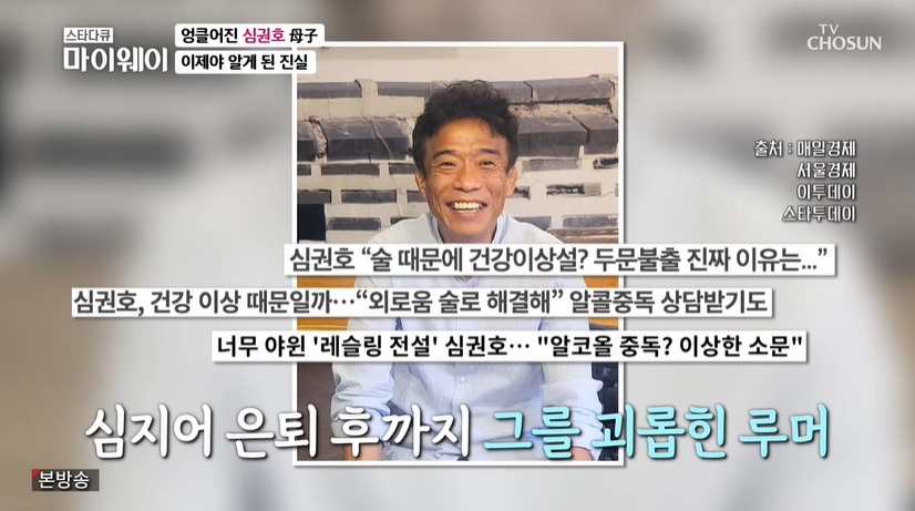 17일 방송된 TV조선 '스타다큐 마이웨이'에서는 전 레슬링선수 심권호가 출연했다.