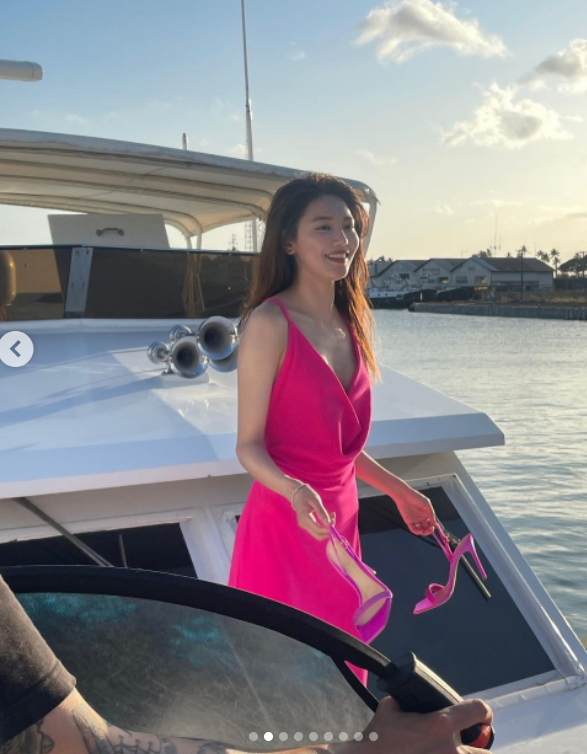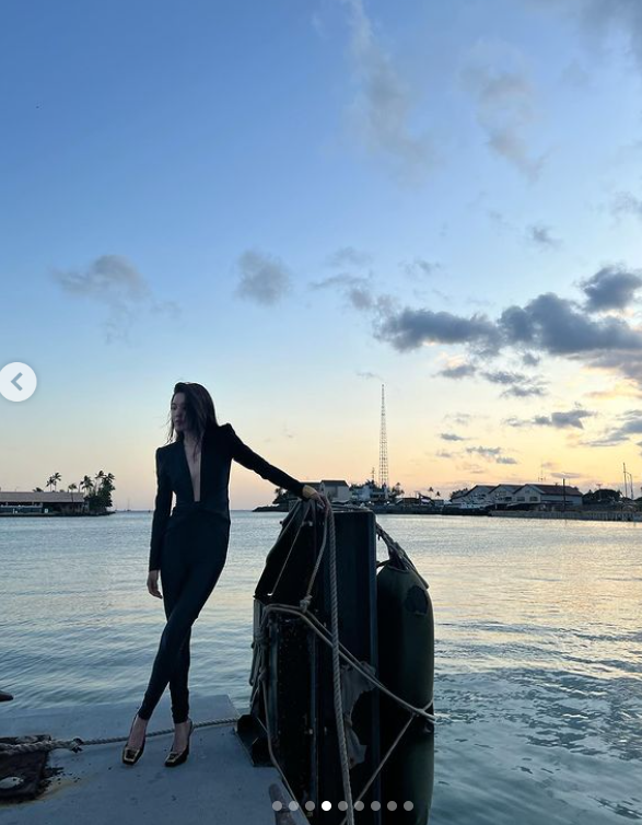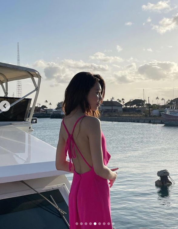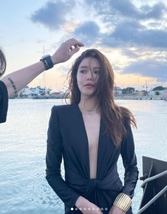 수영은 23일 자신의 SNS에 W코리아와 함께 한 화보 촬영 현장 사진을 올렸다. 보트 위에서 진행된 촬영에서 수영은 가슴골을 관통해 허리 라인까지 드러나는 클리비즈룩으로 고혹미를 뽐냈다.