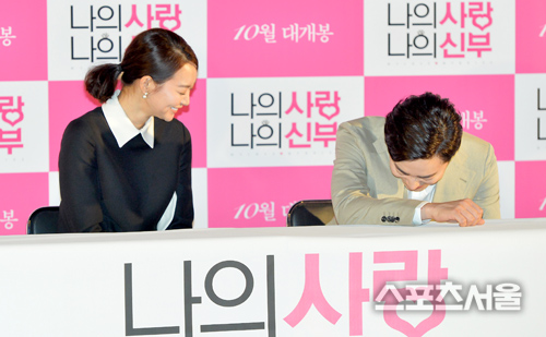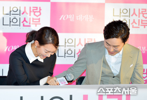 [스포츠서울=문진주 인턴기자] 24일 서울 성동구 왕십리 CGV에서 열린 영화 '나의 사랑 나의 신부 ' 언론시사회가 열렸다. 영화는 이명세 감독, 박중훈, 故최진실 주연의 1990년작 ‘나의 사랑 나의 신부’를 리메이크한 작품으로, 4년 간의 열애 끝에 이제 막 결혼에 골인한 영민과 미영의 신혼 생활을 담았다. 실제 결혼생활을 떠오르게 하는 리얼한 장면과 대사들이 어우러진 영화는 재미와 감동이라는 두 마리 토끼를 동시에 잡아내 상영 내내 화기애애한 분위기가 지속됐다.