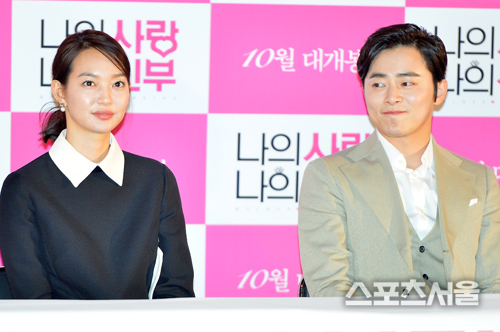 극중 새신랑 새신부 역을 맡은 조정석과 신민아는 나란히 앉아 기자간담회에 임했다.