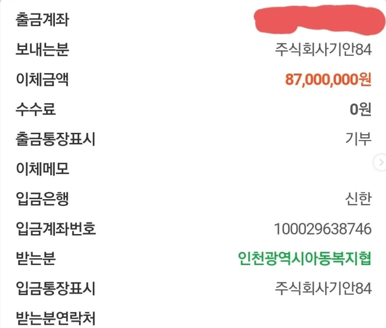 주식회사기안84 명의로 전달된 기부금은 총 8700만원이었다. 이어진 인증서에는 서울, 인천, 대전, 강원, 충남, 대구, 전북 등 미술공부를 준비하는 전국의 중고생 15명에게 전달될 지원금이 빼곡히 적혀 있었다.