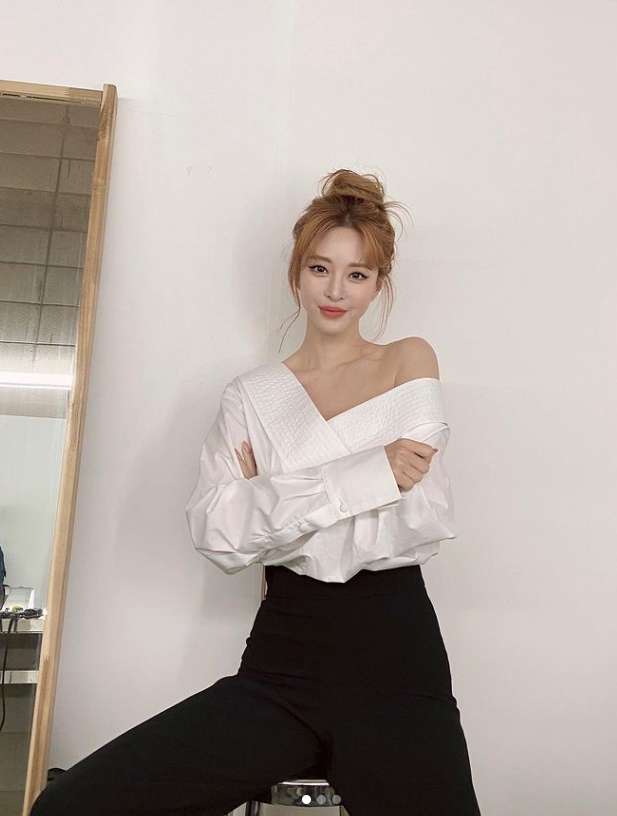 한예슬은 26일 자신의 SNS에 하얀 벽을 배경으로 언밸런스 화이트 블라우스, 검정 바지 차림의 사진을 올렸다.