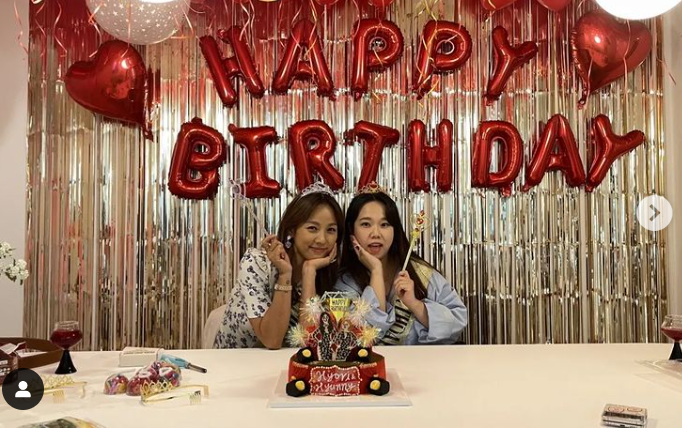 남편 제이슨의 뜨거운 사랑만큼 붉디붉은 생일 축하 풍선과 블링블링 장식을 배경으로 홍현희와 이효리는 왕관을 쓴 채 다정히 얼굴을 맞대고 있다. 두 사람의 앞에는 홍현희와 이효리 모습을 본 딴 케이크가 놓여있다.