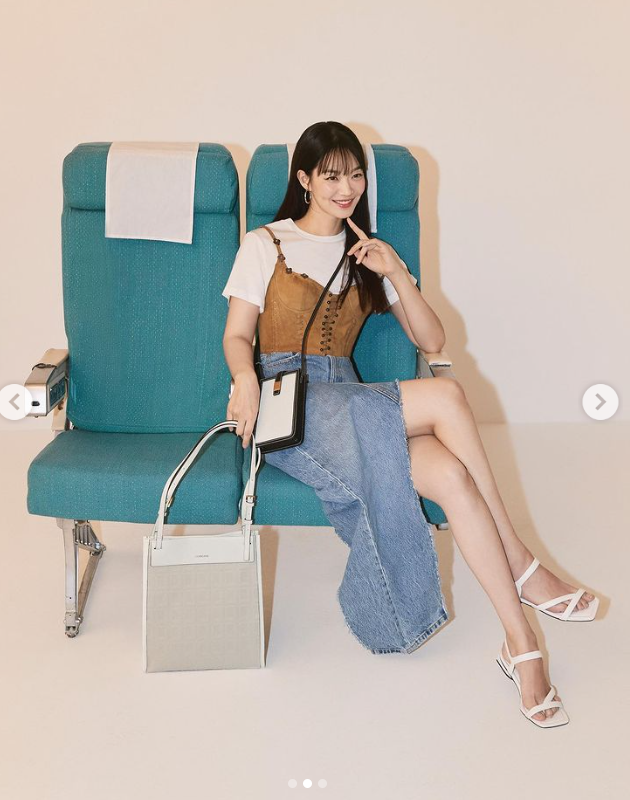 화보 속에서 신민아는 갓 여행을 떠나듯 비행기 의자에 앉아 잔뜩 신난 표정이다. 스웨이드 소재 뷔스티에에 긴 절개가 들어간 데님치마를 착용, 자유 분방한 분위기를 풍겼다.