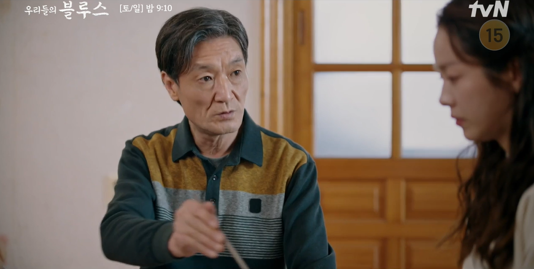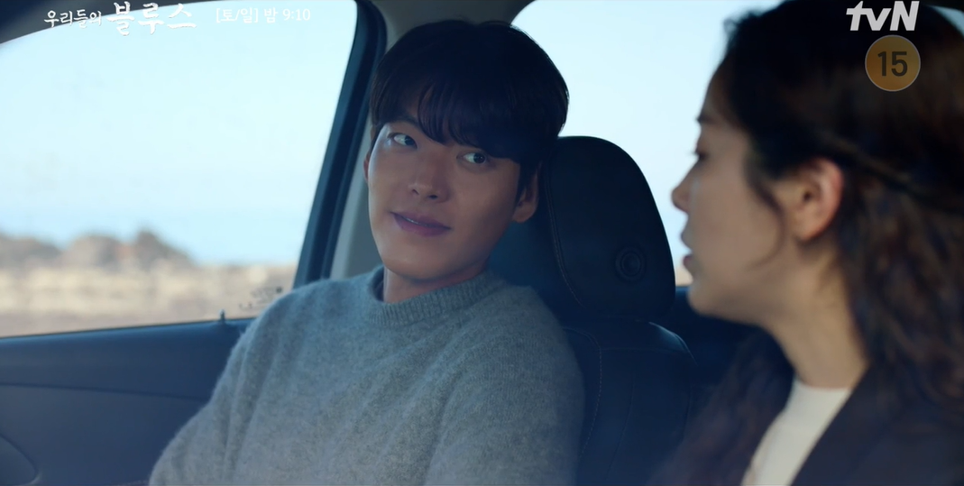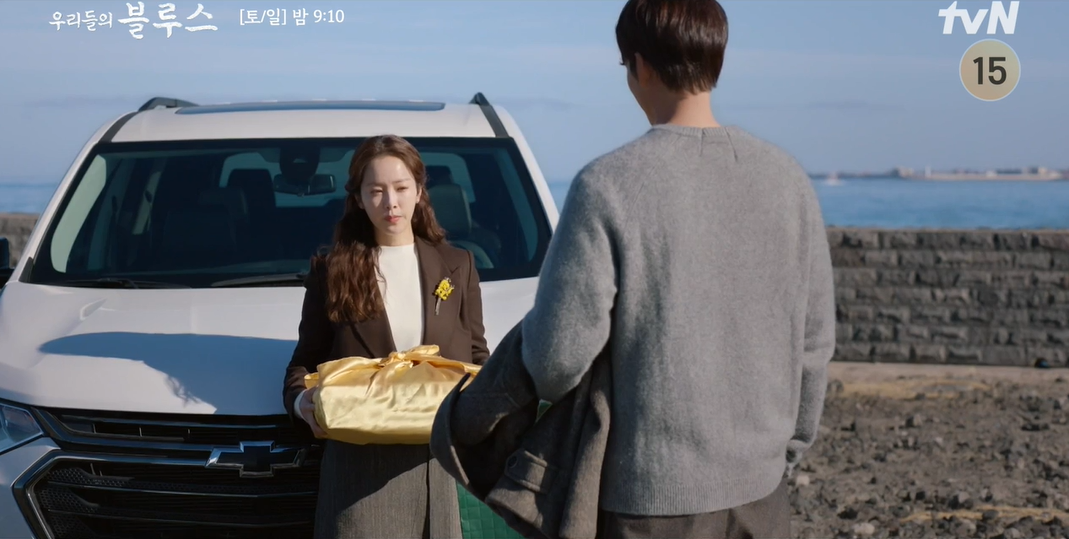 11일 방송된 tvN '우리들의 블루스'에서 영옥(한지민 분)은 정준(김우빈 분)의 부모를 만나러 가기로 해놓고 망설였다.