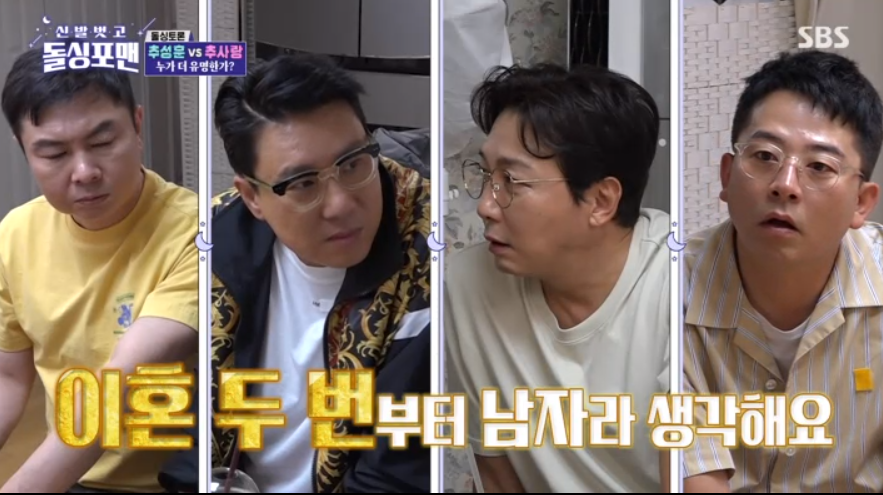 추성훈은 "이혼 두 번부터 남자라 생각한다"라고 말해 모두를 놀라게 했다.