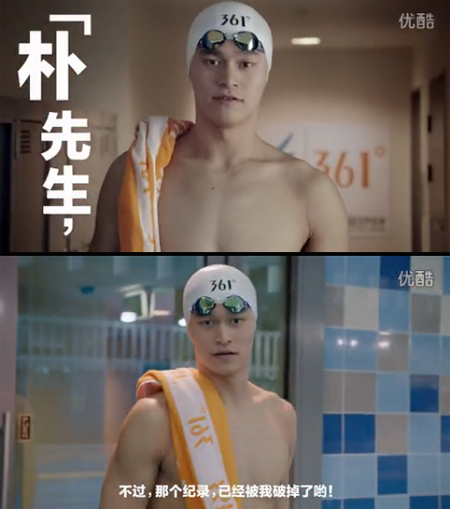 중국의 수영스타 쑨양이 광고를 통해 박태환에게 도발했다. 쑨양은 인천아시안게임 공식 스폰서인 중국 스포츠용품 기업 '361°'의 TV·인터넷 광고에 등장해 박태환에게 도전장을 던졌다. 쑨양은 한국어로 "박 선수"라고 부른 뒤 중국어로 "지난 아시안 게임에서 세계기록을 세웠죠"라고 언급했다. 다시 한국어로 "대단하다"라고 말했다. 이어 중국어로 "그런데 어쩌죠? 그 기록 제가 깨버렸는데"라고 비꼰 뒤 한국어로 "올해 인천에서 제 기록에 도전해보시죠"라고 말하며 수영장 물 옆을 걸어간다.