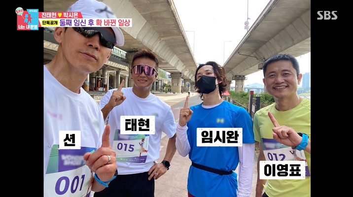 진태현은 "언노운 크루라고 있다.션 형님의 런닝 크루다"고 설명했다. 런닝 크루 안에는 임시완, 이영표, 박보검도 있었다. 이에 김숙은 "저도 가야겠네요. 저분들 오시면 가야지"라고 말해 웃음을 자아냈다.