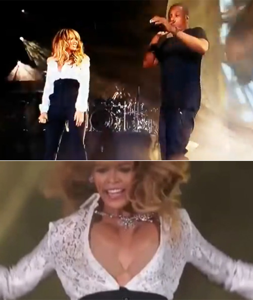 이날 무대에서 비욘세는 남편 제이 지와 함께 열정적인 무대를 선보였고, 이 과정에서 하얀색 블라우스의 단추가 터지면서 가슴이 관객들에게 그대로 노출됐다.