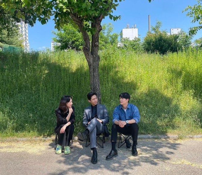 [스포츠서울 | 박효실기자] 배우 강태오, 하윤경, 주종혁 등 ENA 화제작 '이상한 변호사 우영우'의 주역배우들이 나무그늘 아래서 햇살을 피하는 모습이 포착됐다.