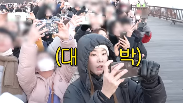 영상 속 한혜진은 새해 첫날부터 남산으로 일출을 보러 갔다.