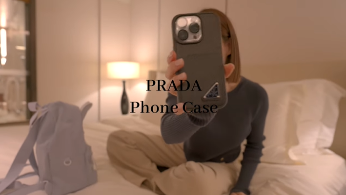'왓츠인마이백' 콘텐츠를 시작한 아이비는 "핸드폰 케이스도 명품 프라다다"라며 자랑을 시작했다.