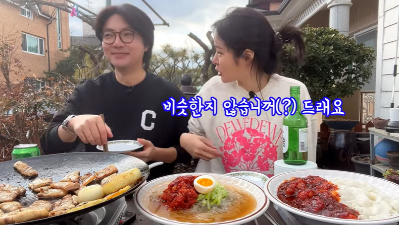 영상 속 부부는 삼겹살과 냉면을 먹으면 이야기를 나눴다.