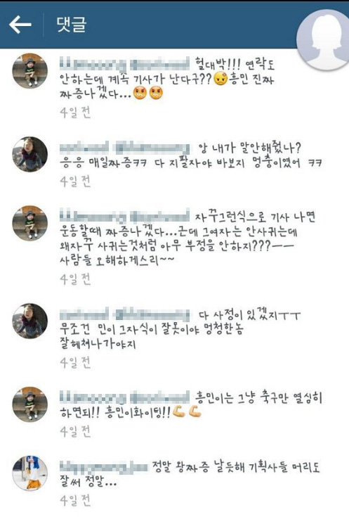또 다른 지인이 "정말 왕 짜증 날듯해. 기획사들 머리도 잘 써 정말"이라고 적자 "다들 똑똑해. (손흥)민이가 바보였고 반성 많이 하고 있어. 근신 중이야"라고 덧붙였다.