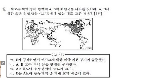 문제가 된 수능 세계지리 8번 문항. 사진 | 한국교육과정평가원 제공