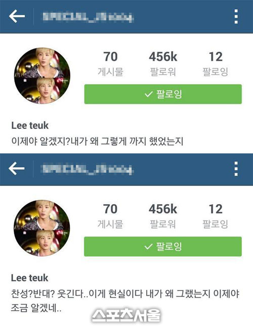 한편, 이특은 현재 자신의 소개글을 삭제한 상태다.