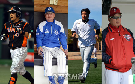 왼쪽부터 강민호, 류중일, 정현욱, 선동렬. 사진 | 스포츠서울 DB