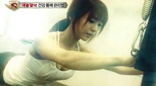 그는 가슴골을 노출하는 등 S라인 몸매가 드러나는 타이트한 트레이닝복을 입고 늘씬한 건강미를 과시해 시청자의 시선을 사로 잡고 있다.