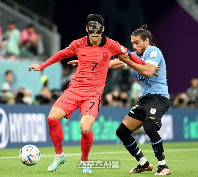 또 상대는 월드컵 당시 조별리그 첫 상대로 격돌한 우루과이다. 그때 손흥민은 결전 3주 전 소속팀 경기에서 안와골절상을 입어 수술을 거친 뒤 안면보호 마스크를 쓰고 출격했다. 가뜩이나 100% 몸이 아닌 상태에서 시야가 좁아질 수밖에 없는 마스크를 착용한 터라 기회 창출에 애를 먹었다. 원하는대로 경기가 이뤄지지 않아 스스로 답답해했고, 팀도 0-0으로 비겼다.