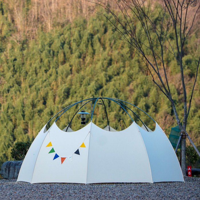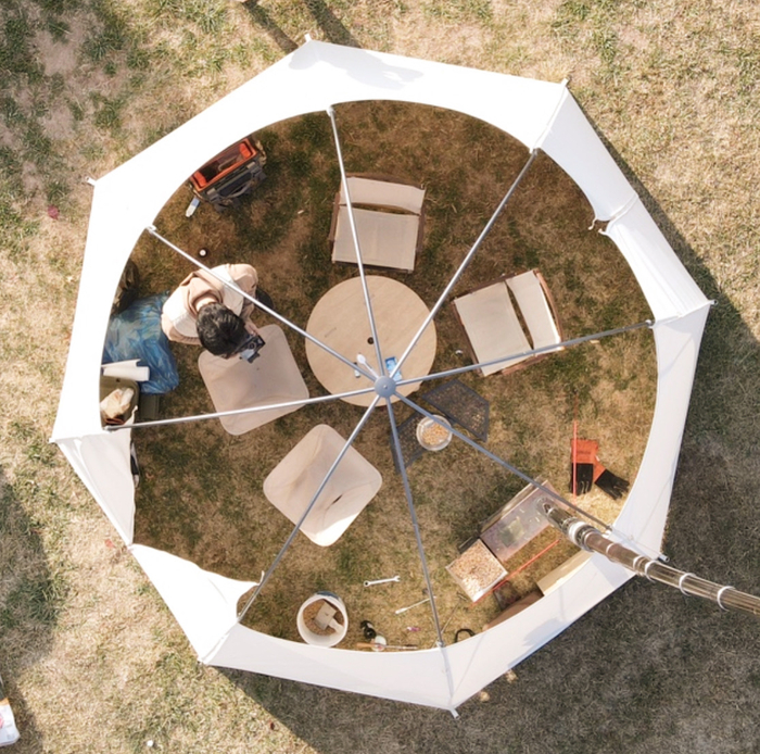 아늑이 자신있게 출시한 멍쉘터는 지붕이 없는 쉘터형 텐트로 뻥 뚫린 천장을 통해 낮에는 ‘하늘멍’, 밤에는 ‘별멍’을 즐기기에 안성맞춤이 최신형 텐트다. 특히 쉘터 안에 장작이나 화로를 설치하면 보다 운치 있는 불멍이 가능해 큰 호응을 얻고 있다.