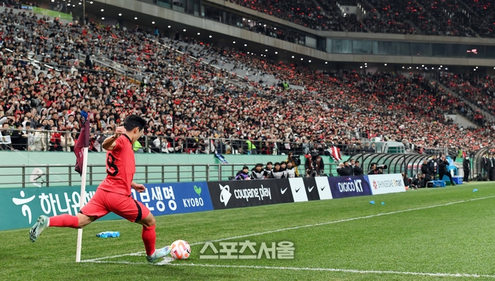 이강인은 경기 시작 전부터 서울월드컵경기장에 환호와 함성을 몰고 다녔다. 이강인의 이름이 언급되자 엄청난 환호가 쏟아졌다. 그리고 이강인이 전광판에 모습을 드러낼 때마다 그 환호와 함성은 계속됐다.