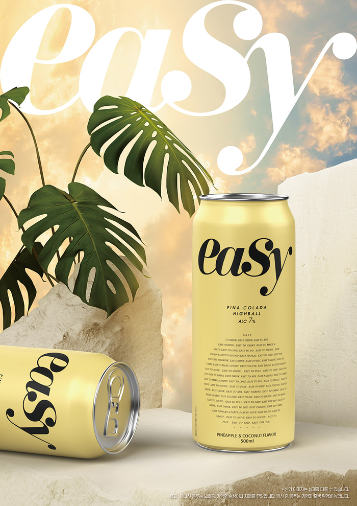 패키지에는 이지 하이볼을 대표하는 ‘EASY’ 폰트 디자인과 함께 제품의 맛과 향을 떠올리는 감성적인 옐로우 컬러를 적용했다.