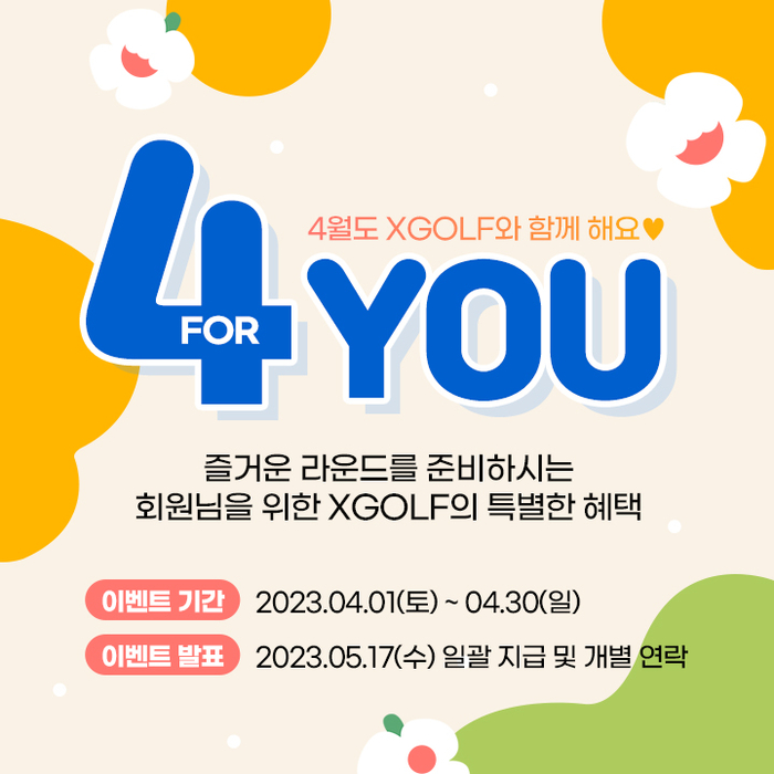 [스포츠서울 | 김민규기자]골프 부킹 플랫폼 XGOLF(엑스골프)가 본격적인 골프 시즌을 위한 4월 부킹 프로모션 ‘4 YOU’를 진행한다.