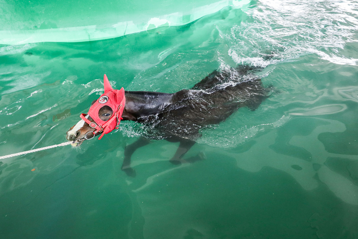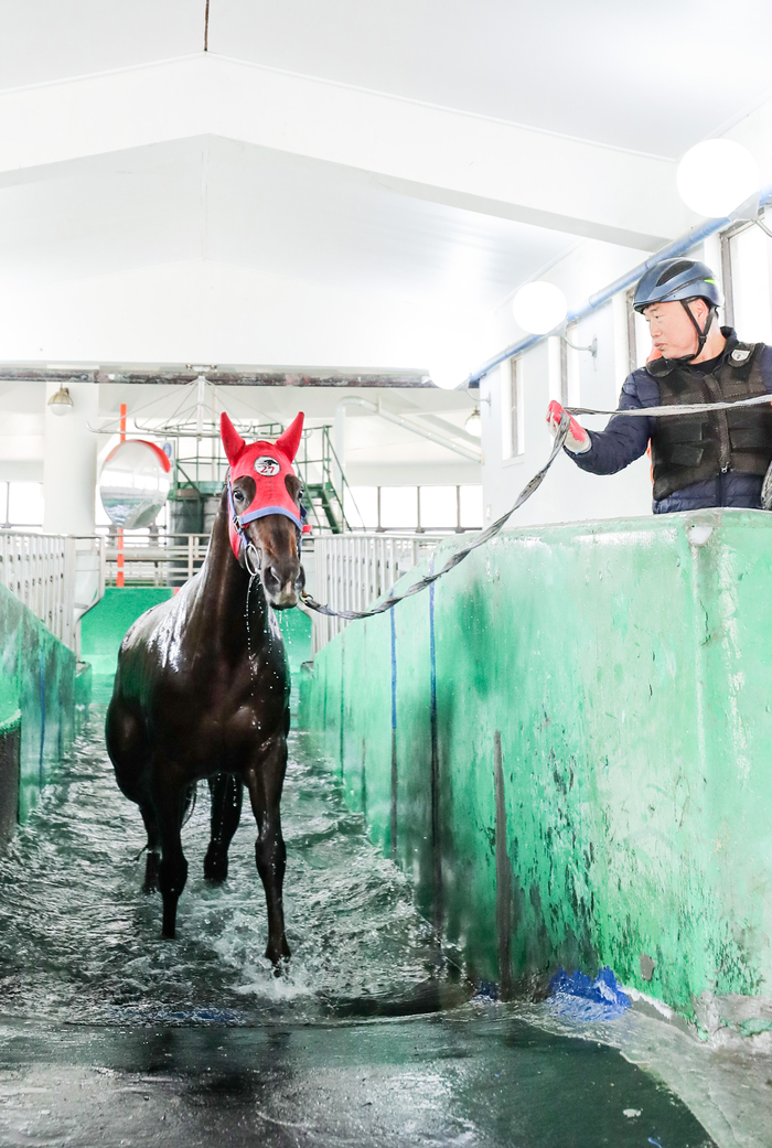 한국마사회는 일찍이 1987년 말 수영장을 개소해 겨울철을 제외한 3월부터 11월까지 운영하며 경주마들의 수중재활 및 훈련을 돕고 있다. 다리근육과 관절이 곧 생명인 경주마들에게 다리 부상은 조기은퇴로 이어질 수도 있어 치명적이다. 관절이나 인대 등의 부상으로 지상훈련이 어려운 경주마들은 수영을 통해 부상 주변조직을 강화할 수 있다. 또한 몸에 무리를 주지 않는 선에서 근육 및 심폐 훈련을 할 수 있어 컨디션 조절을 통한 조기복귀에 탁월하다는 장점이 있다.